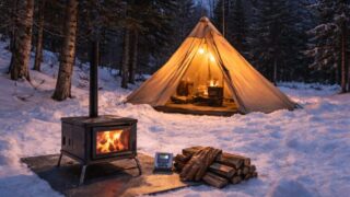 雪中キャンプで薪ストーブは本当に必要?テント内暖房の安全対策(換気・CO警報器・耐熱シート)、床が溶ける原因とグランドシートの選び方、禁止ルール確認、底冷え対策、撤収・灰処理まで初心者向けに丁寧解説。ストーブ不要派の寝具セッティングやサブ暖房のコツ、後悔しない選び方の基準も紹介。